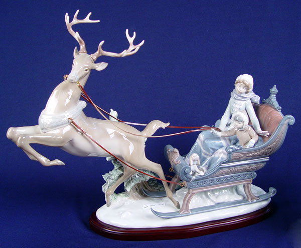 LLADRO WINTER WONDERLAND FIGURAL GROUP: Lladro 1429, retired in 2001. Sculptor was Salvador Debon. 15 3/4''h x 20'' long x 9''. Excellent condition.
