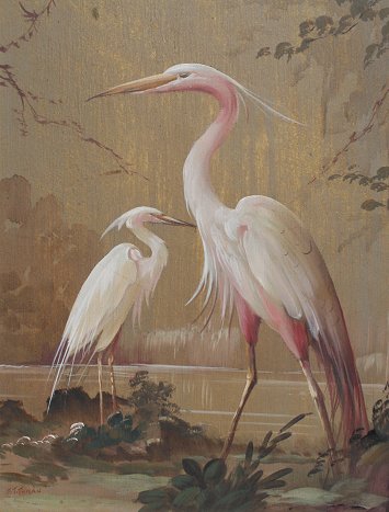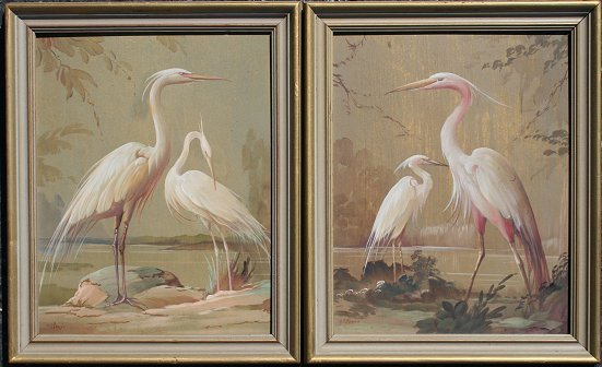 TORAN, Alphonse, (American, 1896-): Pair Oil/Masonite Egret Paintings, 10'' x 8'', signed, framed, 11 1/2'' x 9 1/2''.