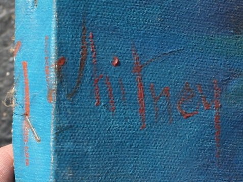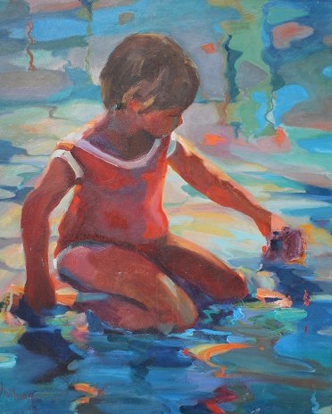 WHITNEY, G?, (American, 20th C.): Young Child Playing Along Shore, OIL/C, 30'' x 24'', signed, unframed.
