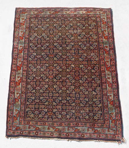 SEMI ANTIQUE BIDJAR RUG: Dark blue ground, 5' 4'' x 3' 8''