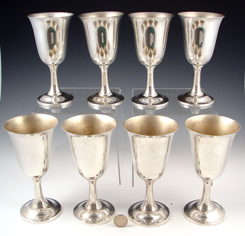 8 FISHER STERLING GOBLETS: 8 sterling goblets by Fisher pattern #62. Each measures 6 3/4'' high. No monograms. Approx. 43 troy oz.