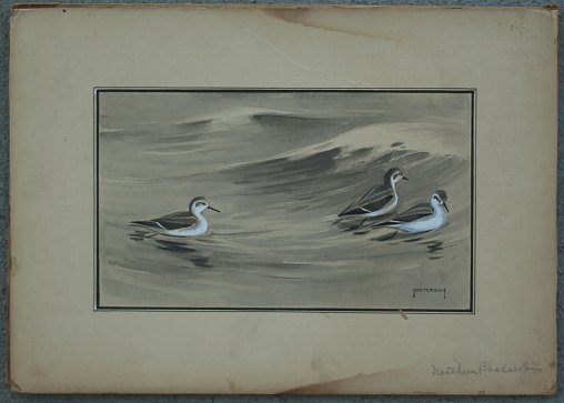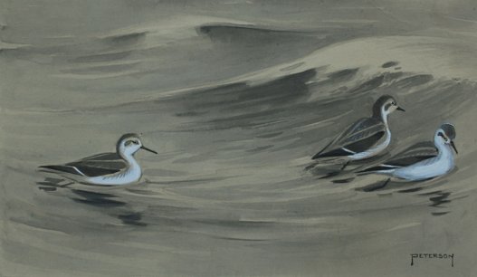 PETERSON, Roger Tory, (American, 1908-1996): Northern Phalarope, W/C, 5 1/2'' x 9 1/2'' image size, signed, unframed, 10'' x 14'' with margins. Moisture damage in margins.