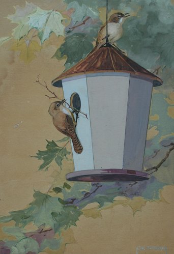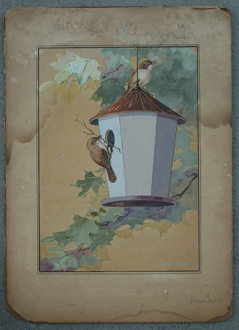 PETERSON, Roger Tory, (American, 1908-1996): House Wren, Gouache, 14'' x 10'' image size, signed, unframed, 20'' x 14'' with margins. Water damage in upper left corner, bottom right and in margins.