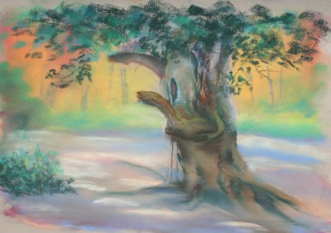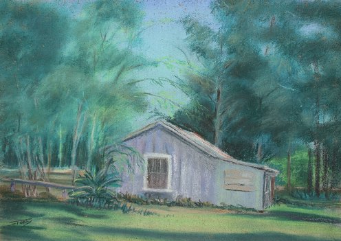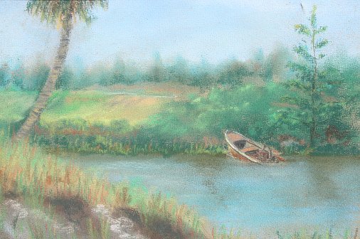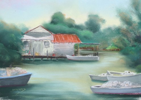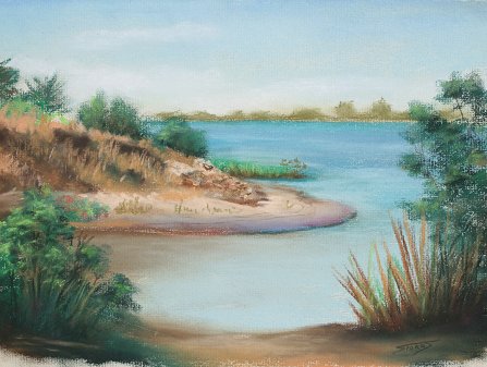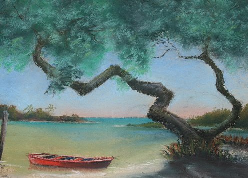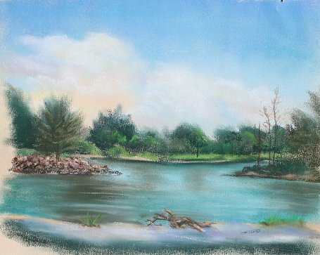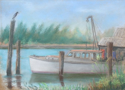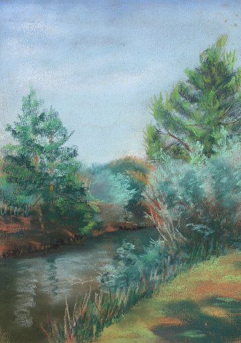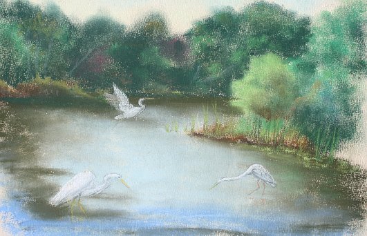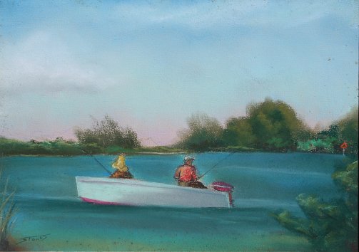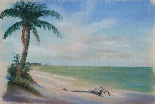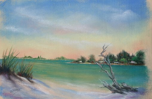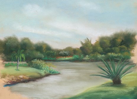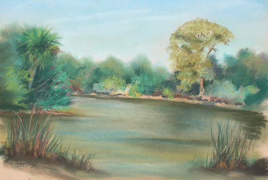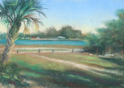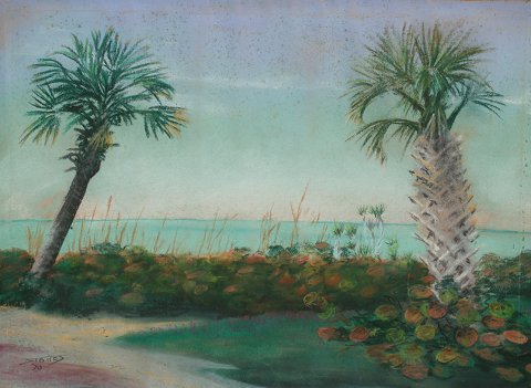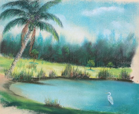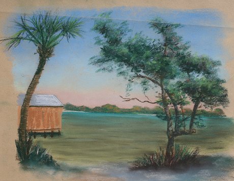 STOKES, Durett, (American, 20th C.): Portfolio of 19 Florida Landscape Pastels, 15'' x 20'' paper size, unframed, as is, in worn leather artist's bound folio, (images include many West Coast scenes like Oscar Scherer Park, and Englewood, as well as many fishing scenes.