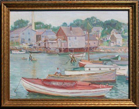 LIDBERT, Charles, (American, 20th C.): Rockport Harbor, OIL/B, 15'' x 20'', signed and dated '13, period gilded frame, 18'' x 23''.