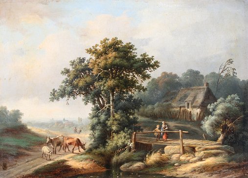 MAMMES, Charles, (European, 19th C.): Dutch Landscape, OIL/Wood Panel, 8 1/2'' x 12'', signed, framed, 14'' x 17''.
