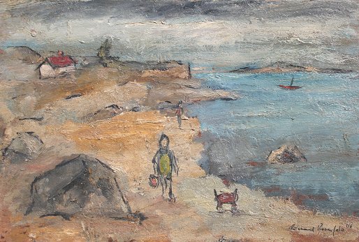ROSENFELD, Edward, (American, 1906-1983): Coastal Scene with Figures, OIL/B, 10 1/2'' x 15 1/2'', signed and dated '46, unframed.