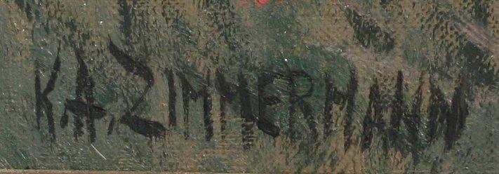ZIMMERMANN, K .A., (American, 20th C.): Florida Poinciana Landscape with Heron, OIL/C, 20'' x 24'', signed, framed, 26'' x 30''.