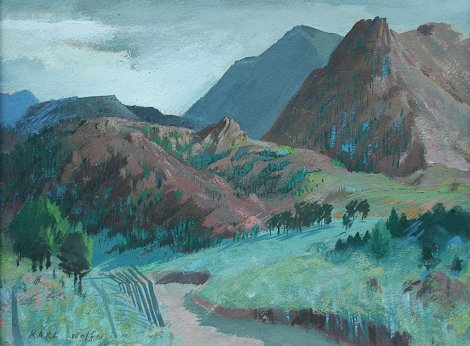 WOLFE, Karl, (American, 1904-1985): Mountain Trail Landscape, Gouache, 9'' x 12'' sight size, signed, framed, 13 1/2'' x 17 1/2''.