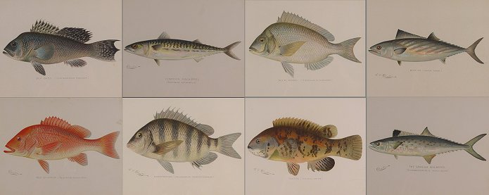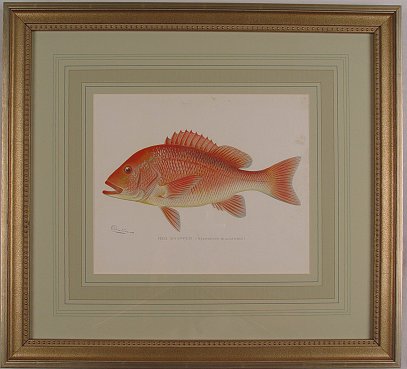 8 FRAMED SHERMAN DENTON FISH LITHOS: Eight (8) Color Lithographs of Fish, 11'' x 9'', matching custom framed/mats.