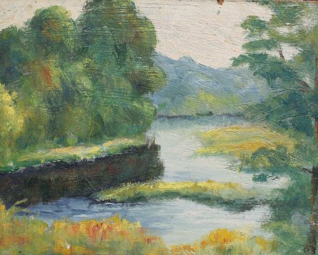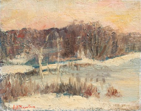 NEWTON, A. H., (Canadian, 1890-?): Pair Landscapes, OIL/B, 8'' x 10'', one is 2 sided, both signed, unframed. Need cleaning.