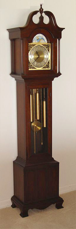HOWARD MILLER BARWICK GRANDFATHER CLOCK: Model 4875 with #155 triple chime weight driven works. By Barwick, a division of Howard Miller. Measures 77 3/4'' high x 18 1/4'' wide x 11 1/4'' deep.