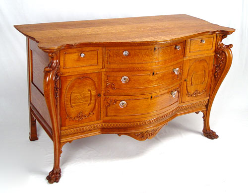 GOLDEN OAK HORNER QUALITY SIDE BOARD: 36 1/4'' high x 59 1/4'' wide x 26'' deep.
