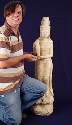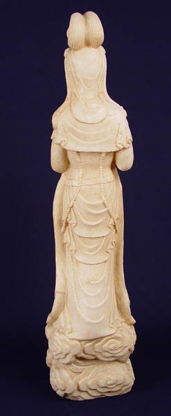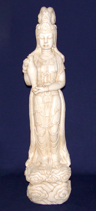 4 FEET TALL CARVED STONE QUAN YIN STATUE: 48'' x 10'' x 9'' deep.