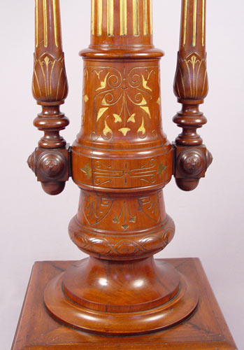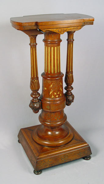 AESTHETIC / VICTORIAN PEDESTAL STAND: Walnut, 40'' high, the top is 20'' x 12 1/2'', 17 1/2'' square at base.