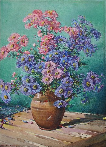 LEAVER, Noel, (British, 1889-1951): ''Mickelmas Daisies'', W/C, 14 1/2'' x 10 1/2'', signed, titled verso, unframed. Very minor staining in margin edge, frame will cover.