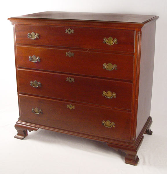 BIGGS MAHOGANY CHEST: 4 drawers, bracket feet. 42 1/2'' high x 42'' wide x 24'' deep.