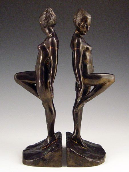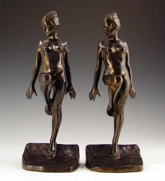 PAIR RONSON ART METAL DECO NUDE FIGURAL BOOKENDS: Paper label on felt. 11''h.