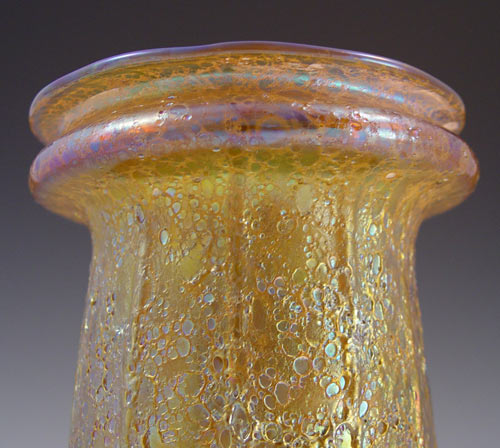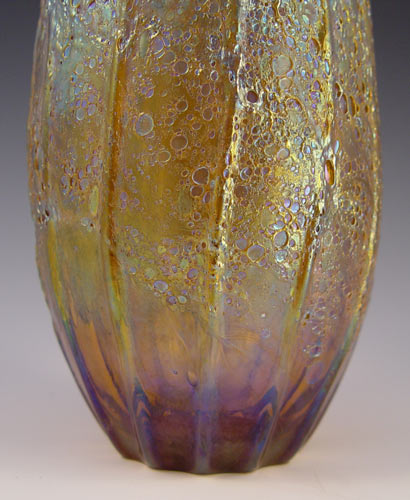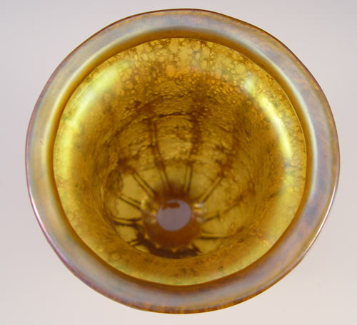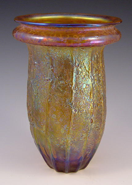 TIFFANY FAVRILE ART GLASS VASE: 7 7/8''h. Signed with the registered logo. Free of chips, cracks, or repairs.