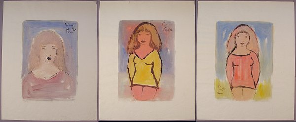 ETIENNE, Roger, (French, 20th C): 3 Young Female Portraits, W/C's, 24'' x 18 3/4'' with margins, signed Paris, 2 are dated '55, 1 is dated '57, unframed.