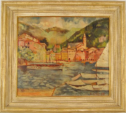 VITALE, E., (Italian, 20th C.): Harbor Scene, OIL/C/B, 15 3/4'' x 18 1/2'', signed and dated '39, framed, 22'' x 25''.