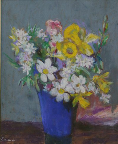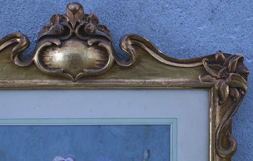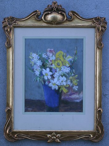 PASTEL FLORAL STILL LIFE SIGNED EAMES, IN GREAT GILT CARVED NOUVEAU FRAME: Sight size 12'' x 10'', gilded frame measures 23'' x 17''. Frame has had some minor repair, good condition overall.