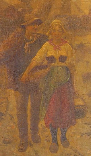 FISHERFOLK OIL/C DUTCH PAINTING: 32'' x 20'', no visible signature, framed, 40'' x 28''. Needs cleaning, paint lifting in right margin.
