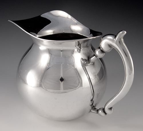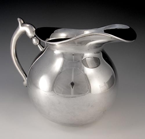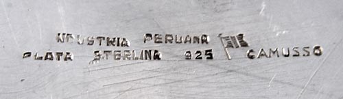 CAMUSSO STERLING WATER PITCHER: Marked Industria Peruvian Sterling 925 Camusso on base. Measures 6 1/2'' high x 9 1/2'' at widest point. Please note minor base scratches, scratch on side. No monogram. Approx. 16.1 troy oz.