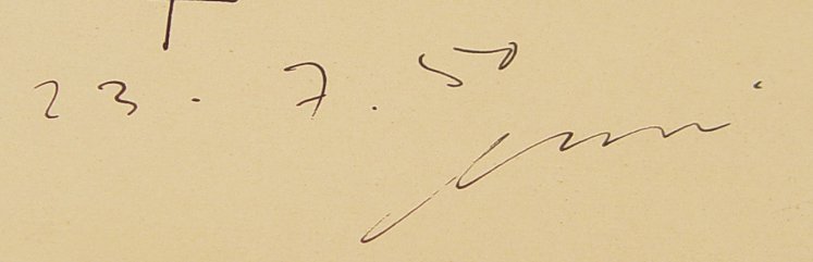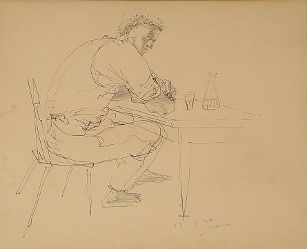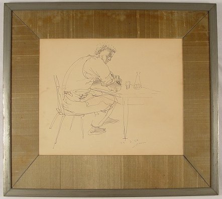 ERNI, Hans, (Swiss, 1909-): Study of a Man at a Table, Pen/Ink, 11 3/4'' x 14 3/4'', signed and dated 23/7/50, silver gilt frame with minor wear.