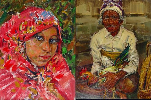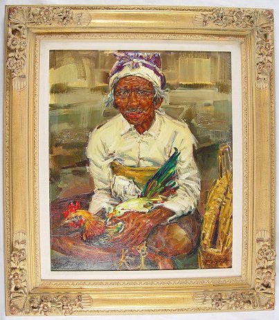 ZEPEDA, Ernesto, (American 1946-): 2 Oil/CB's; Young Girl, 16'' x 12'', signed, framed, 23 1/2'' x 19 1/2'', Man with Chicken, Oil/CB, 24'' x 20'', signed, framed, 33'' x 28''.