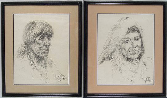 ZEPEDA, Ernesto (American 1946-): 2 Portrait Drawings, 22'' x 17'' sight size, signed and dated '92 and '94, matching frames, 30'' x 25''.