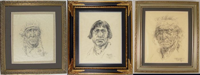 ZEPEDA, Ernesto (American 1946-): 3 Portrait Drawings; 20 3/4'' x 17 1/2'' sight size, signed and dated '87, framed, 32'' x 30'', 17'' x 13'' sight size, signed and dated '87, framed, 24'' x 20'', ''Mayan'', Guatemala, 20'' x 16'', signed, framed, 27'' x 25''.