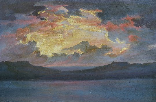 HAVELL Jr., Robert, (American, 1793-1878): Sunset Landscape, OIL/B, 11'' x 17 1/4'', unsigned, unframed. Minor inpaint in the margins, needs cleaning. From the collection of a direct descendant.