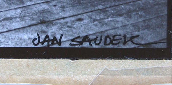 SAUDEK, Jan, (Czech, 1935-): Basement Series Photograph of Young Girl with Headphones, 8 3/4'' x 6 3/4'', signed and matted, 17'' x 14''.