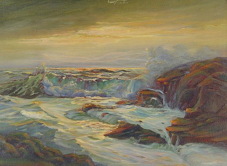 SHUMAKER, Phillip, (American, 20th C.): Coastal Scene, Oil/CB, 12'' x 16'', framed, 16'' x 20''. Abrasion in upper mid-margin.