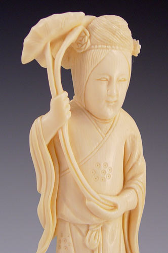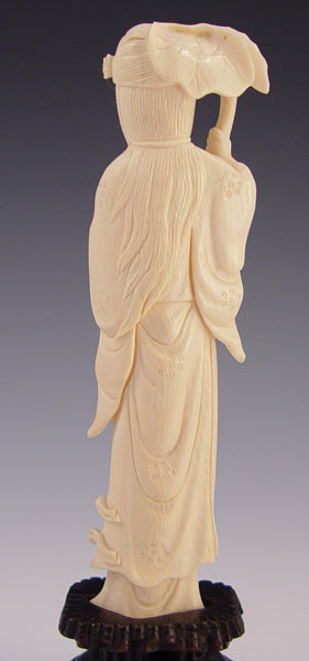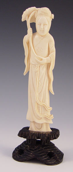 CHINESE CARVED HEAVENLY MAIDEN IVORY FIGURE: 6'' tall, excluding the wood stand. Carved from single piece of ivory.
