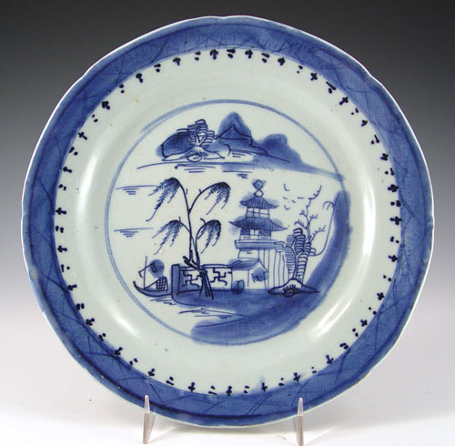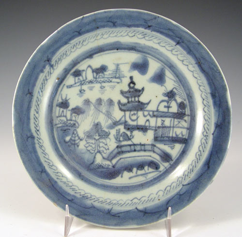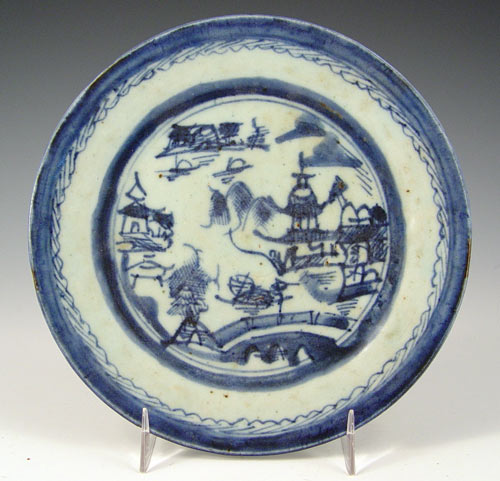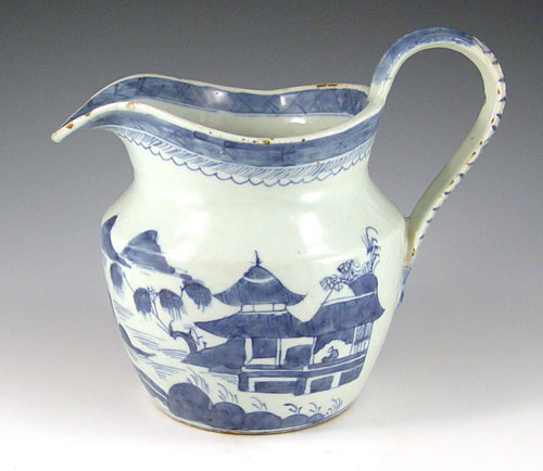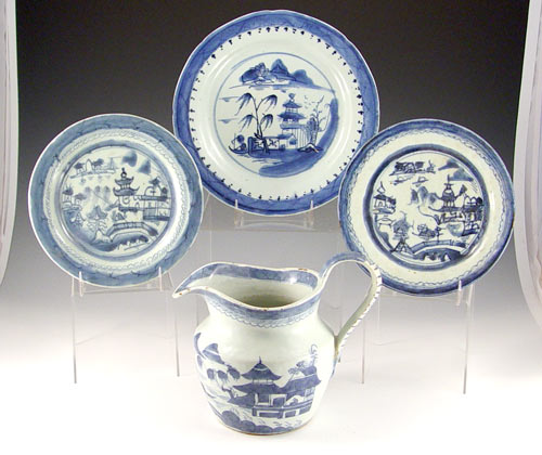 4 PIECE CHINESE CANTON PITCHER AND PLATES: Jug / pitcher, 5 1/2'' high, please note old rim chips. Plate, 9'' dia and 2 plates, 7'' dia.