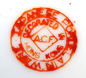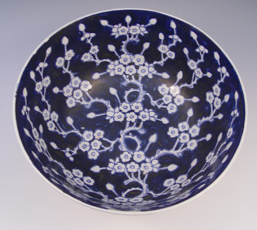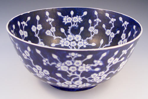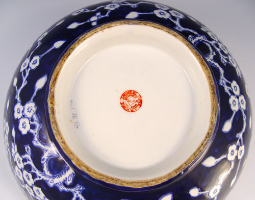CHINESE PORCELAIN EVENING PLUM BOWL: 5 1/2''h, 12'' dia. Hong Kong hallmark.