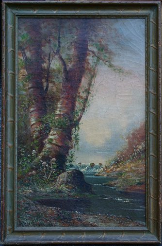COOPER, Aston David Middleton, (American 1856-1924): Birches Along a Stream, OIL/C, 25'' x 16'', signed and dated 1921, period gilded frame with minor wear, 28'' x 19''. Cracklure, needs cleaning.