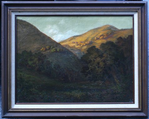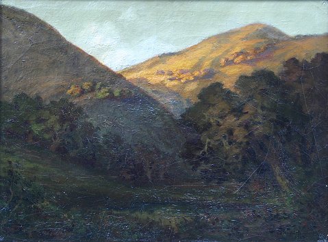 TILDEN, George S., (American 1867-1932): ''Marin Co. Hills'', OIL/C, 18'' x 24'', signed and dated 1913, framed, 24'' x 30'', titled in pencil verso. Cracklure, very thick impasto, needs cleaning.