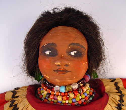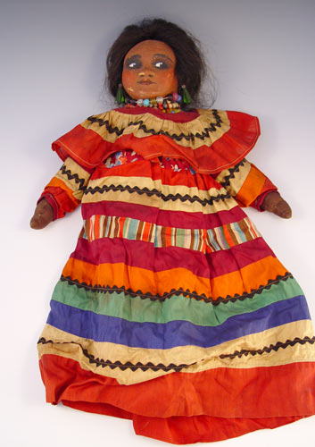 1930'S SEMINOLE INDIAN CLOTH & PAPER MACHE DOLL: Circa 1930's paper mache head with filled cloth body. Please note minor rips in color of original cloth outfit. Measures 19'' tall.