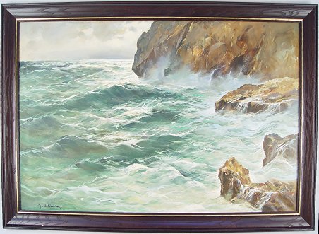 ODIERNA, Guido, (Italian, 1913-): ''Coastal Rocks, OIL/C, 24'' x 36'', signed, framed, 28 1/2'' x 40 1/2''.