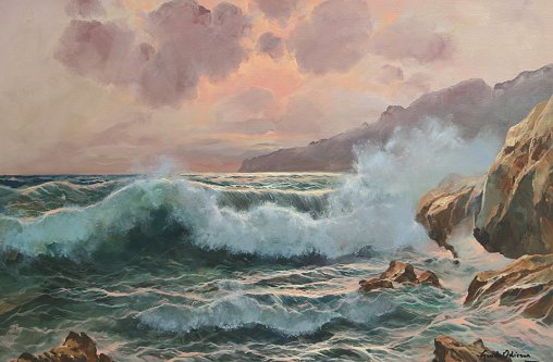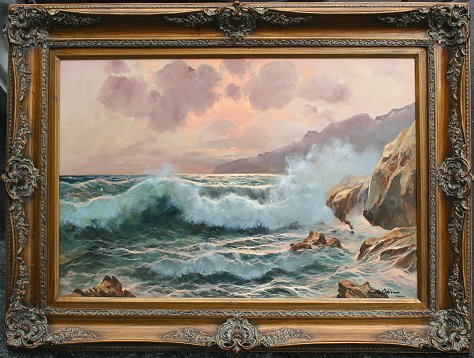ODIERNA, Guido, (Italian, 1913-): Sunset Coastal Scene, OIL/C, 24'' x 36'', signed, framed, 30'' x 42''.