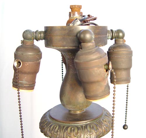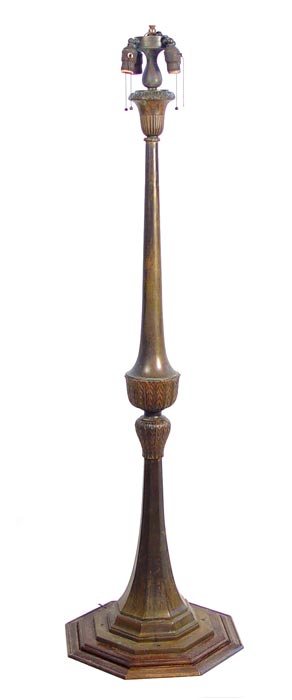BRONZE FLOOR LAMP: The octagonal base is signed ''Tiffany Studios NY 1589''. 62''h. The floor lamps in this collection may be incomplete and are built from components, including signed Tiffany.