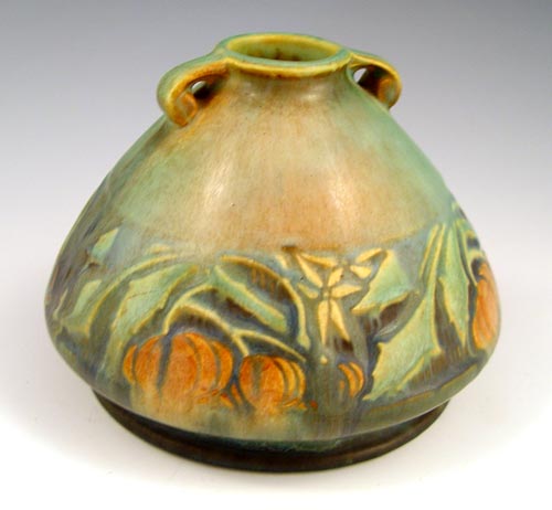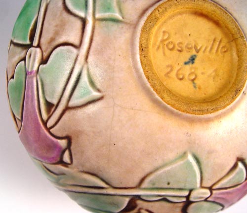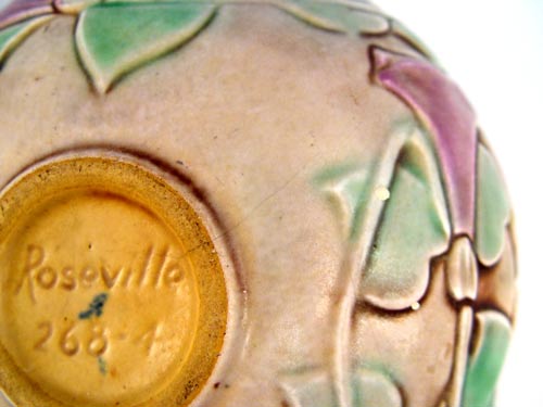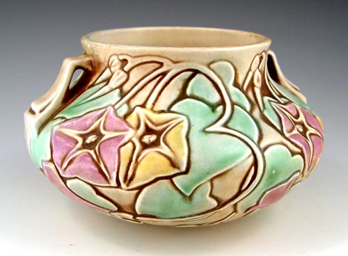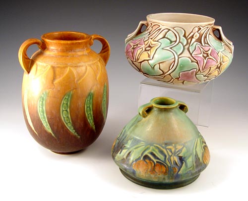 3 ROSEVILLE POTTERY VASES: 1) Morning Glory, 268-4'' 2) Brown Falline, 7 1/2''h., paper label. 3) Baneda, 4 1/2''h., paper label. All free of chips, cracks, or repairs.