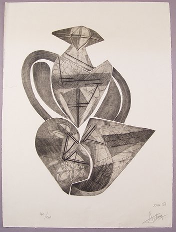 ADAMI, Valerio, (Italian, 1935-): Abstract Female, Etching, 29 3/4'' x 22'', pencil signed and dated Juin '51. 2'' tear in left margin, not in image.