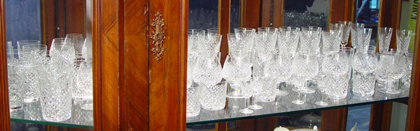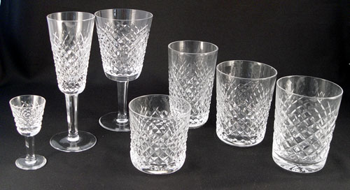 52 PIECE WATERFORD ''ALANA'' CRYSTAL SUITE: To include 9 water goblets, 11 brandy, 11 flat tumblers (12 oz., 5 1/8''), 9 double old fashions (4 3/4''), 5 flat tumblers (3 1/4'', 5 oz), 4 cordials, and 3 tall champagnes.