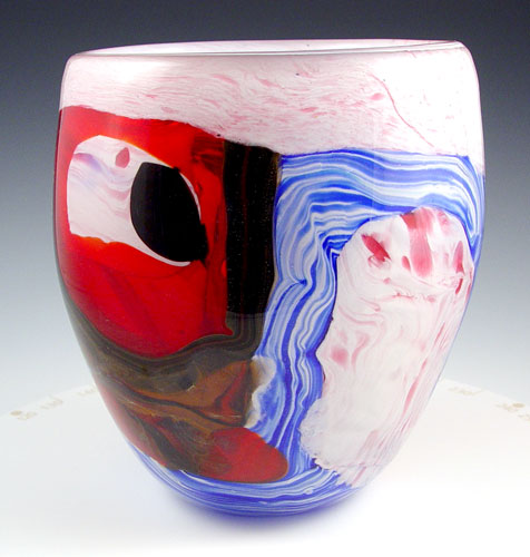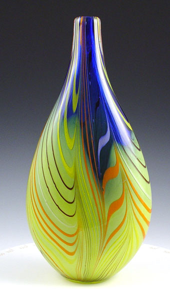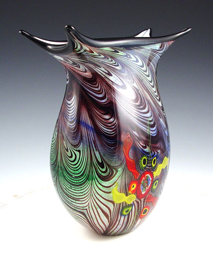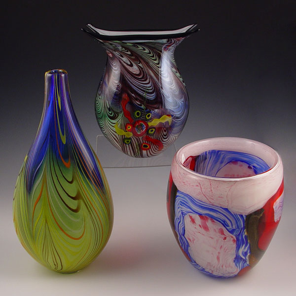 3 MURANO ITALIAN ART GLASS VASES: 8 1/2'' - 14''. One bears a Lavoriazone Art Murano label.