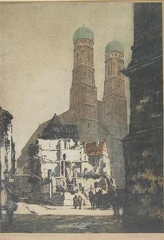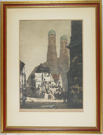 KASIMIR, Luigi, (Austrian, 1881-1962): ''Die Frauenthurme in Munich'', Etching and Aquatint, 22 3/4'' x 15 3/4'' sight size, pencil signed and titled, framed, 32 1/2'' x 25''.