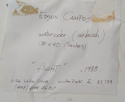 CAMPOS, Edson, (American 20th C.). ''Flight,'' W/C & Airbrush, 40'' x 30'', signed and labeled verso.